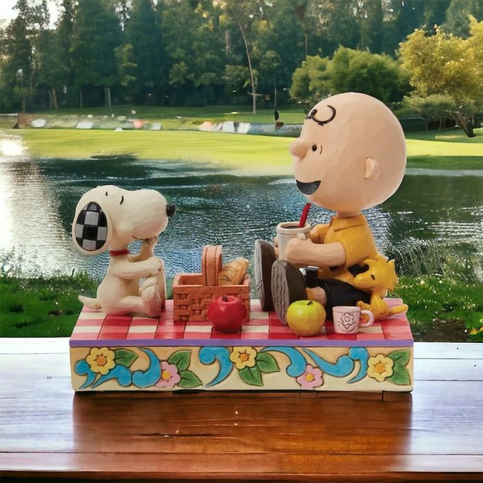 さらに、Jim Shore Peanutsの魅力の一つでもある台座が、このフィギュアではピクニック用のレジャーシートとして表現されています!
