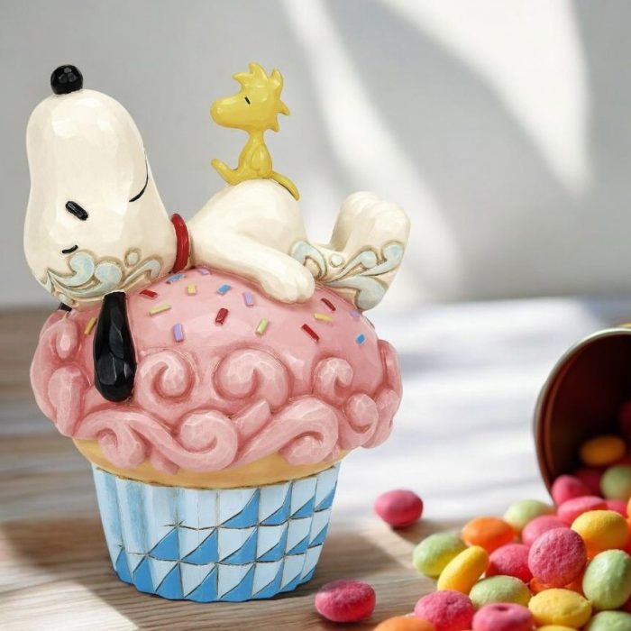 甘い香りに包まれてフワフワのカップケーキの上でのリラックスタイムは、スヌーピーにとって至福の時なのでしょうね♬